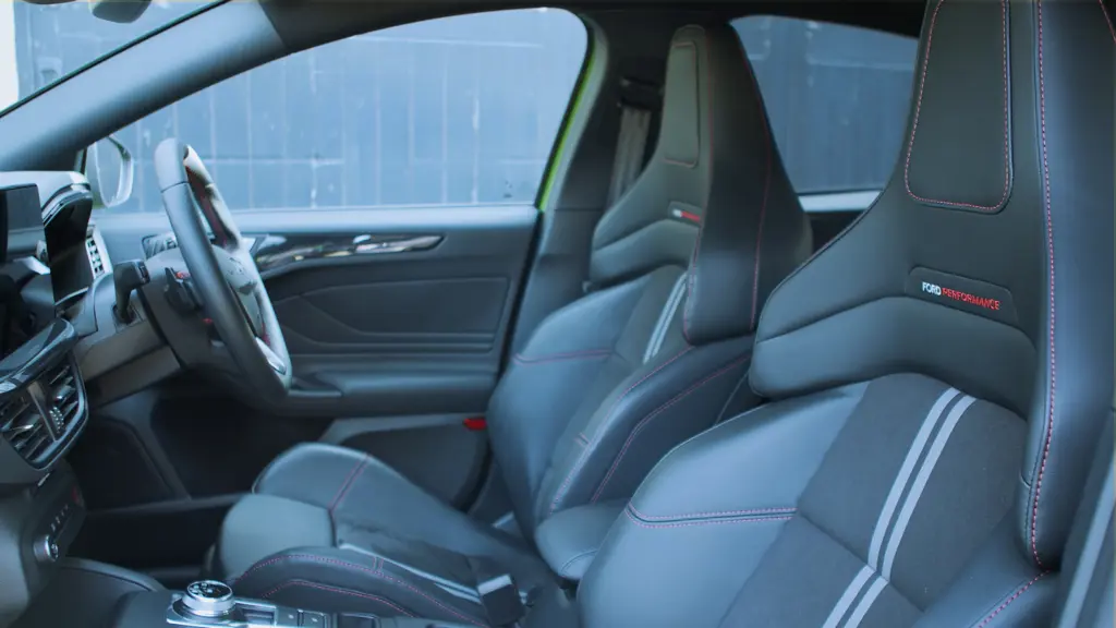 After a third generation Focus ST that didn't really look dynamic enough, Ford styled the original version of this fourth generation model to have a bit more pavement presence - and that evolution continues with this facelifted design, available as before in hatch and estate forms. It features a bold exterior design with details that include honeycomb upper and lower front grilles, large side vents, side skirts and aerodynamically-optimised spoilers on the lower fascia and rear roof. A smarter design of 18-inch alloy wheel is standard, with optional 19-inch wheels also available. As with other models in the revised Focus range, this updated ST has smarter LED headlamps with built-in foglights. plus the brand badge has been moved from the bonnet to the front grille. And the darker rear tail lamps have a smarter 'loop light' illuminating signature. Inside, the big (and rather disappointing) new is that Ford no longer offers grippy Recaro front seats to ST customers. The brand reckons that the replacement 'Performance seats' are better - you be the judge. These seats have been given the seal of approval from the leading spinal health organisation Aktion Gesunder Rücken e.V. (AGR) (the Campaign for Healthier Backs). Fourteen-way power seat adjustment, including four-way adjustable lumbar support, helps drivers reach their ideal driving position, while standard seat heating contributes to high levels of comfort. As with other upper-spec Focus, the improved cabin now features a larger 13.2-inch 'SYNC 4' central touchscreen. In a controversial move, Ford has decided that this monitor should now incorporate the ventilation controls, giving the dashboard a cleaner, less cluttered look. Luggage space still isn't particularly noteworthy either; there's 341-litres of capacity if you load to window level - or 375-litres with a tyre repair kit fitted. A typically-specified Estate model fitted with a mini-spare offers up to 575-litres.