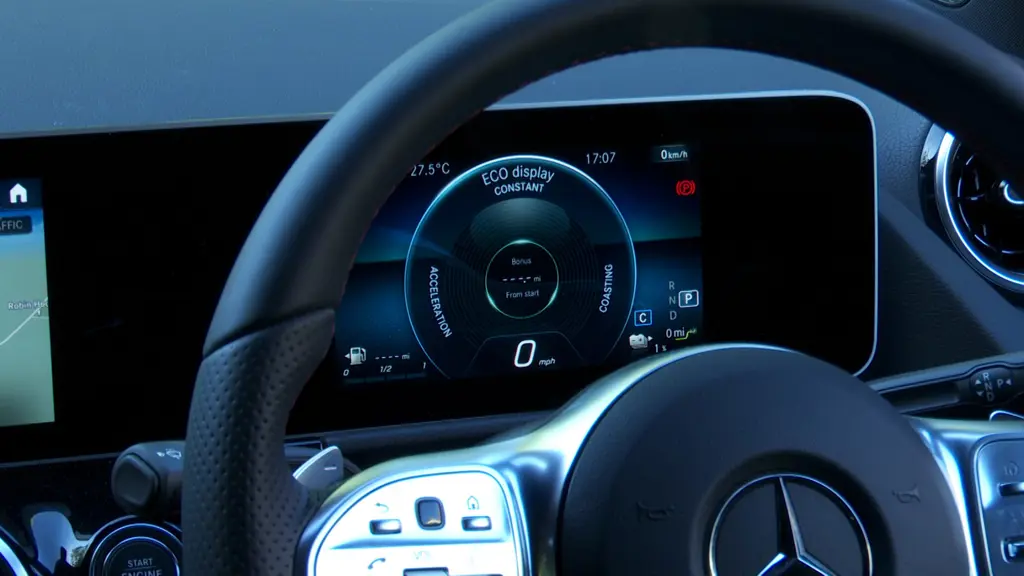 The four cylinder 2.0-litre engine borrowed from the A 35 has the same performance stats with this updated GLA 35 model - 302bhp and 400Nm of torque. This has now been embellished with a 48V mild hybrid module which adds 13bhp to the powertrain at low revs and also energises the start stop system. The 62mph from rest sprint takes 5.2s en route to 155mph. And there's a 4MATIC 4WD system that allows up to 50% of torque to be sent to the rear axle. But you don't get the torque vectoring rear differential of the faster GLA 45, or that car's wild 'drift mode'. There's an AMG SPEEDSHIFT DCT 8G 8-speed paddle shift auto transmission and buyers get much the same 'Dynamic Select' driving modes system as you'd find the AMG GT sports car, with 'comfort', 'sport', 'sport+' and 'individual' settings. There's quick, precise steering. And with top 'Premium Plus' trim you get adaptive damping, though you won't want to engage the stiffer 'sport+' mode very often because it makes the already rather over-firm ride firmer still, particularly with larger wheel sizes fitted. There's quite a bit of road noise, but what might sell you this car to you is its fruity exhaust note complete with parps and crackles. Through the turns, there's lots of grip but not much of a feeling of hot hatch-style engagement.