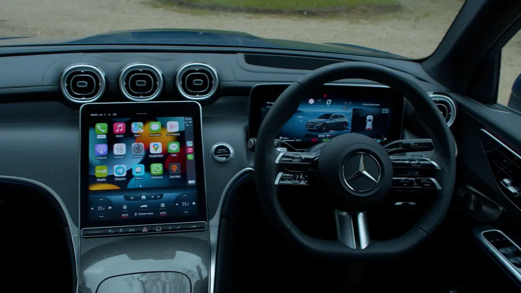Prices start from around £54,500 for the base GLC 220 d AMG Line, rising to just over £73,000 for the top mainstream variant, the plug-in hybrid GLC 300 de AMG Line Premium Plus. There's an alternative GLC Coupe body style available too - at a premium of around £5,500. With both body shapes, expect the same 'AMG Line', 'AMG Line Premium' and 'AMG Line Premium Plus' trim levels. The top Mercedes-AMG GLC 63 S E Performance 4MATIC+ Night Edition Premium Plus variant costs around £125,000. At least the standard equipment is generous, with things like smartphone integration, wireless charging and heated front seats standard across the range. Avoid base trim and your GLC will come with the brand's clever 'DIGITAL LIGHT' headlamps. These project in front of the car onto the road surface when driving at night, with things like guidance lines, symbols and animation, plus the system's intelligent technology highlights pedestrians that you might come across with a spotlight function. Better-specified versions also come with the brand's 'Parking Package' with its 360-degree camera. If your GLC has that, the cabin screen offers a 'transparent bonnet' view when you're driving off road, which shows a virtual view under the front of the vehicle, including the front wheels and the steering position. This allows the driver to recognise obstacles like sharp stones were deep potholes at an early stage. Quite a few owners will want to add on a tow bar - and will like the new 'Towing Route Planner' that's been added into the navigation system. Using this, routes can be planned in the central display that are suitable for driving with a trailer, taking into account things like passage width and passage heights. And there's an enhanced 'Trailer Manoeuvring Assistant' system that makes manoeuvring with a trailer easier, more comfortable and safer.