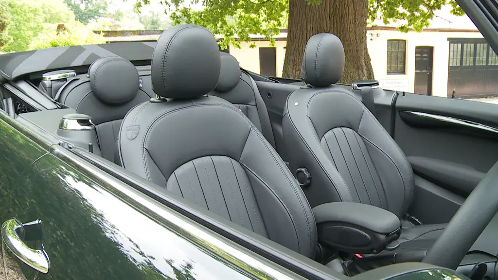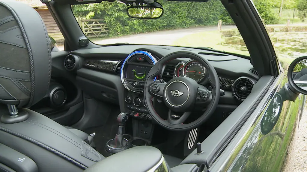 - MINI Yours walk nappa leather steering wheel with grey seam and MINI Yours badge on piano black lower steering wheel spoke