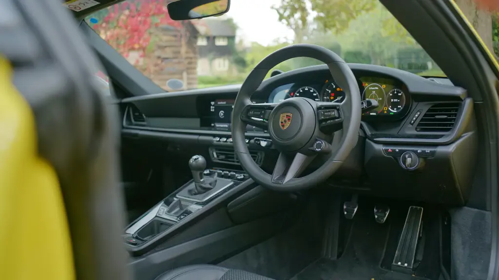 You'd really need to know your 911s to recognise this one for what it is. Or at least you would do if it weren't for the badge work, which you might choose to do without. For those 911 enthusiasts prepared to sweat the details, we'll point out the 10mm-lower ride height and the lightweight Carrera S wheels (as usual with top 911s in this model line 20-inches in size at the front and 21-inches at the back). At the rear of the car, if you don't have badgework to guide you, it's possible to recognise a 'T' by its novel shift-pattern rear window stickers - plus there's a rear spoiler from the GTS. Step inside and the main 'T' feature is the walnut-trimmed short-throw manual gearstick. Other than that, the main thing you'll probably notice is that there are still no rear seats, which goes with the whole lightweight vibe. Otherwise, there's not much to set this cabin apart from the standard Carrera's. The four-way adjustable electric 'Sport Seat Plus' package is standard and the leather chairs grip you into place, though feel a little hard on longer trips. You can upgrade to 18-way adjustable sports seats - or lightweight bucket chairs. An owner of the earlier version of this 992-era 911T might note the major change made to the traditionally driver-focused cockpit; this model now has a fully digital instrument cluster, though the rev counter remains the central feature in the 12.6-inch curved driver's display, customisable with up to seven layouts; including a 'Classic' display inspired by the traditional five-tube Porsche dial design with a central tachometer. There's also now a start button rather than a twisting dial. As before, infotainment is still taken care of by a 10.9-inch Porsche Communications Management central screen. But this monitor now offers more customisation options for drive modes and driver assistance systems, plus there are lots of new connectivity features, including video streaming. As before, under the bonnet, there's 132-litres of storage space.